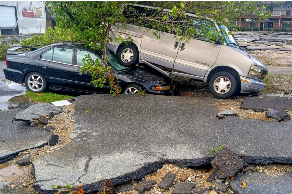 “I called my wife back and they were all sitting at a Citgo gas station off of the interstate, waiting for her brother to pick them up and get them to Grassy Fork about 14 miles away where her family lives. That is when she heard over the scanners that Interstate 40 was failing and parts of it had fallen off into the river. Everyone at that point was saying, ‘Get out! Get out!” and they all jumped into their vehicles and headed uphill.