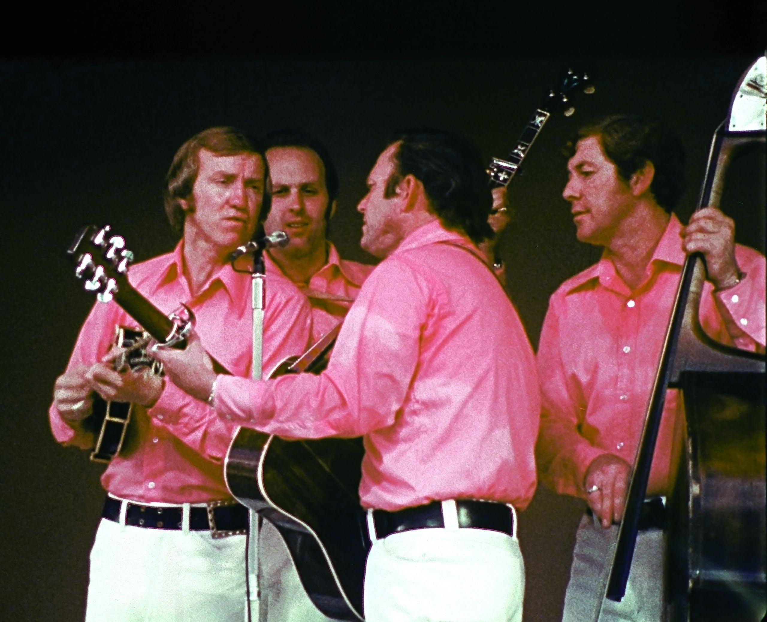 Like reading a good book, different details stand out each time the film is viewed: Bobby Osborne’s scalding tenor lead on “Ruby” and Sonny’s joyful approach to the banjo (with six strings); unforgettable and unique vocals from Charlie Waller, Mac Wiseman and Jimmy Martin; the combustible energy of fiddlers Tex Logan, Curly Ray Cline, Tater Tate, and Chubby Wise; J. D. Crowe ripping through “Train 45;” and the unmatched tone of Earl Scruggs and the obvious pleasure he took in playing music with his sons, Gary and Randy. Be sure to catch the look on 9-year-old Missy Raines’ face as she listens to the Bluegrass Alliance sing “One Tin Soldier.” Watch the crowd’s reaction when the Bluegrass 45 plays “Feudin’ Banjos” with their instruments behind their heads and when the New Deal String Band launches into a bluegrass version of “Love Potion Number Nine.” And then there are the charming accents and storytelling behind the stage from the Lilly Brothers, and the talented musicians at impromptu jam sessions in the fields.