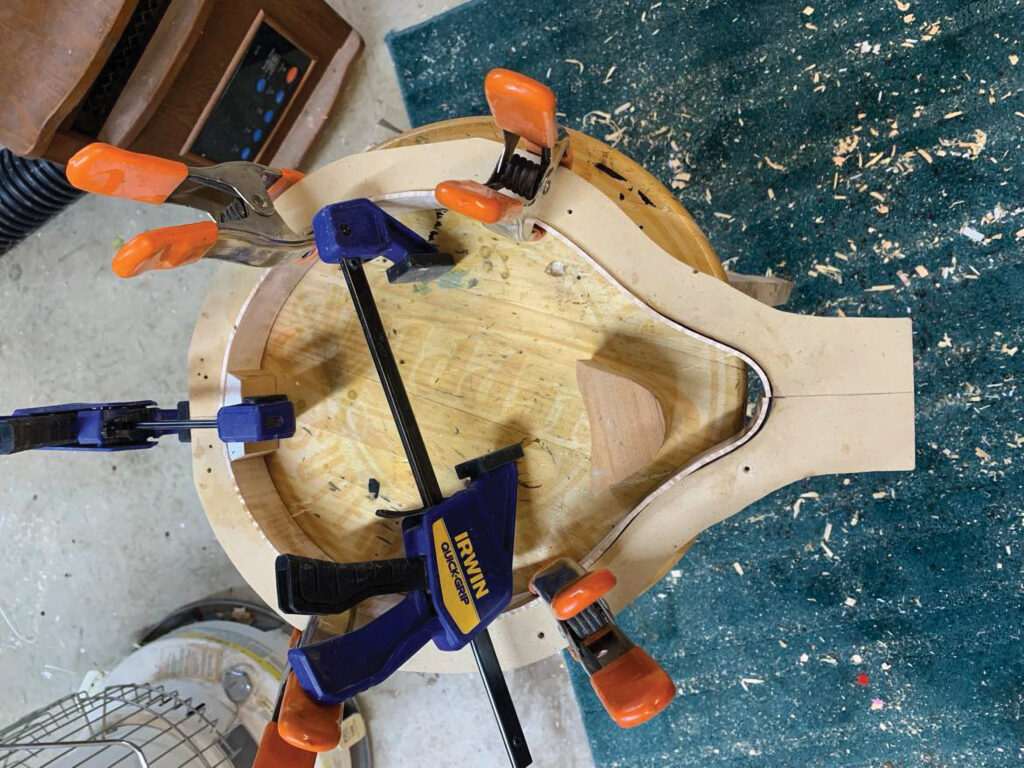 “I don’t have a strict schedule. My wife calls it piddling in my shop. I do it when I can. A lot of times, I will have two or three (mandolins) in the works. Say you got something that you’ve got to clamp up and glue, you can work on another part. Sometimes that transitions into having a couple pieces going. I bounce back and forth, but they eventually get done.”