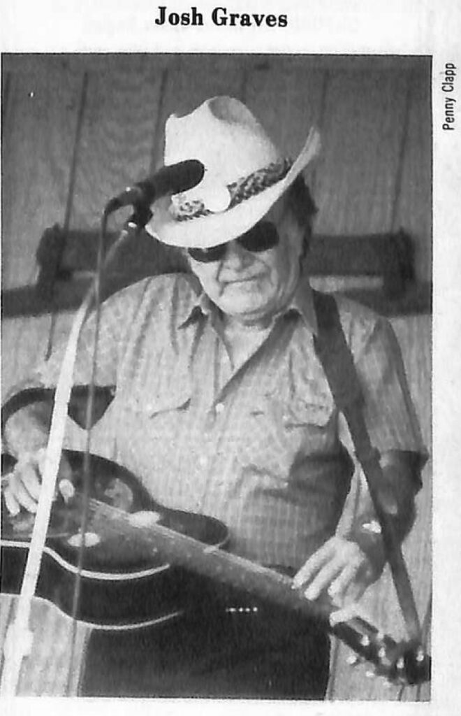 Josh grew up a Jimmie Rodgers fan. His father bought Rodgers’ records for him. On a few of the records he heard Cliff Carlisle of the Carlisle Brothers, who played the Dobro. “He didn’t play anything fancy, just the old slides, but I liked what he was playing and he was my idol,” Josh explained.