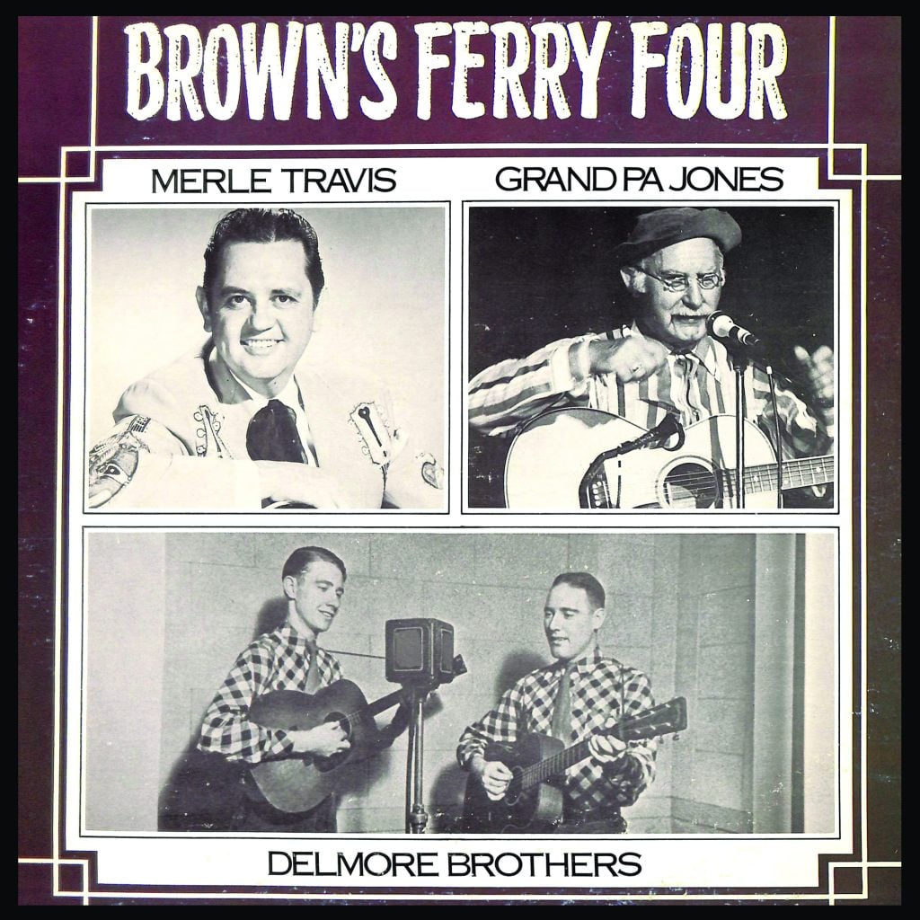 A: The Brown’s Ferry Four was a popular gospel quartet that recorded for King Records from 1945 through 1952. The original, and most popular, incarnation of the group consisted of the Delmore Brothers, Grandpa Jones, and guitar legend Merle Travis. The group got its start in 1943 when all of the members were performers on radio WLW in Cincinnati, Ohio. Their forte was offering spirited renditions of hymns that were drawn from popular shape note hymnals of the day. Also part of the mix was the group’s take on spirituals that were first recorded by African American quartets such as the Golden Gate Quartet.