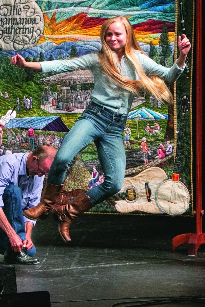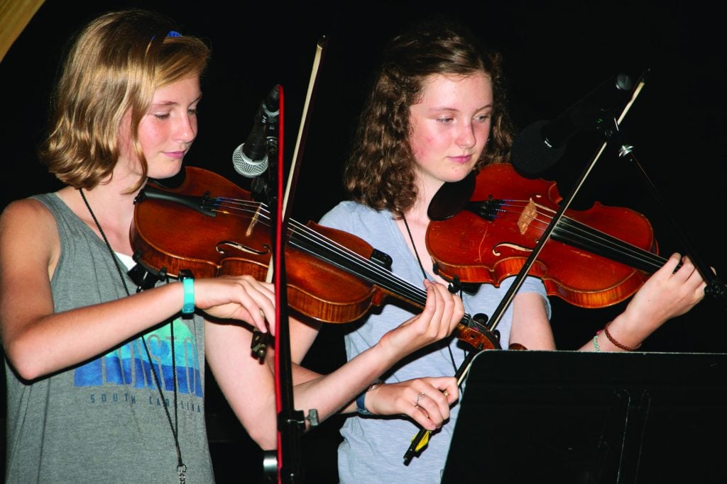 While taking some inspiration from other music camps along the way, the Swannanoa Gathering can hardly be compared to other events of its type. From the beginning, Magill, unconditioned by anyone else’s ideas, was not interested in duplicating what another camp might offer. “Having never done a camp before, in the first years I thought that was a disadvantage,” said Magill, “but as time went on and we began to grow, maybe it was an advantage.” Students build their own curriculum and choose several classes per day from the range of offerings each week, while at night there are jams, student showcases, staff concerts in a formal theater setting, dances, song swaps, and more. Rather than be in the same four classes with the same 15 people all week, students are in four classes of their choosing with different groups of people in each one. A student could take a fiddle class during the day, followed by a dance class, and later that night play fiddle tunes in a dance session. The student could then turn around and easily find themselves in a bluegrass, Irish, or swing jam—and that’s just on fiddle week.