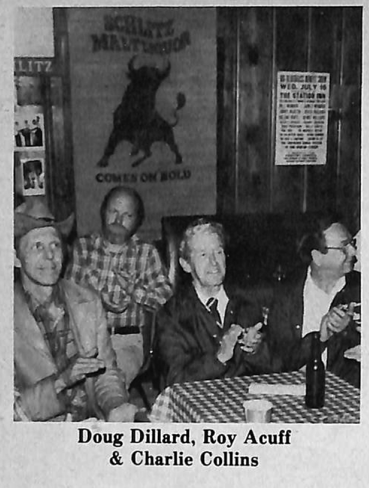 “I think it was sometime in 1978,” Gray continues, “when the building on 28th Avenue was torn down. Cliff Myers opened it here right after the old place closed and I bought it in March, 1981.” Located at 402 12th Avenue South in a rundown block of vacant houses and old industrial buildings just two blocks off bustling Broadway, the Station Inn has that special “atmosphere” that bluegrass fans hold near and dear. The interior walls are lined solidly from front to rear with more than 150 randomly-placed photos, show posters and other items of nostalgia, many of which are collector’s items. Included is a large poster [not a reproduction] announcing the lineup for what is generally conceded to be the first weekend gathering to be called a “bluegrass festival” in Fincastle, Virginia, on Labor Day weekend. Although not indicated on the poster of course, the year was 1965.