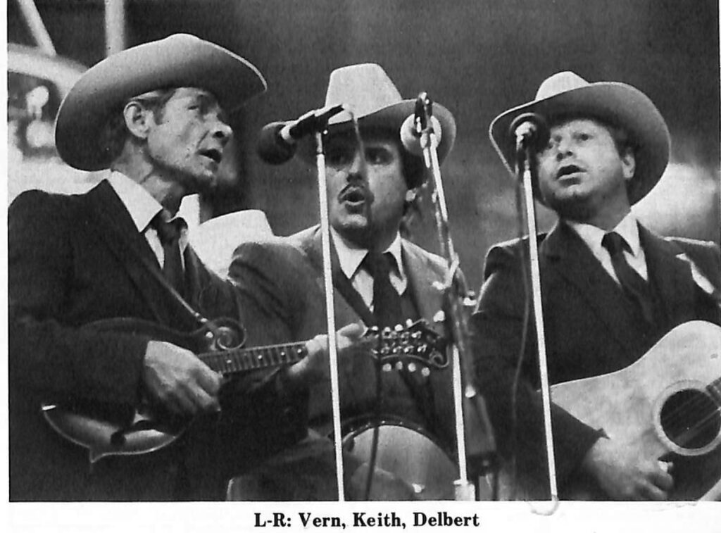 Initially, Delbert and Keith only wanted to pick with Vern and not sing. “I never did try to push them into anything,” recalls Vern, “but I did tell them that if they wanted to sing they could, and I told them how to do it. Well, it wasn’t long until we were singin’ together, and it wasn’t long after that that you couldn’t shut them boys up —they wanted to sing everything. And they’re good, too.”